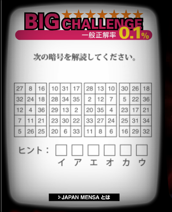 MENSA監修で、1億2000万人のうちたった30人だけが正解者の称号を得られる・・・。